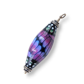 Glass "butterfly pattern" bead, sterling silver findings. Measuring approximately 1.5" by 1.5".