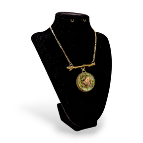 Maureen Henriques & Kim Fields collaboration. Glass floral murrini cabochon and sterling silver pendant with sterling silver twig and chain.