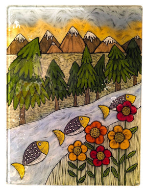 This piece measures 12" by 16" ready to hang